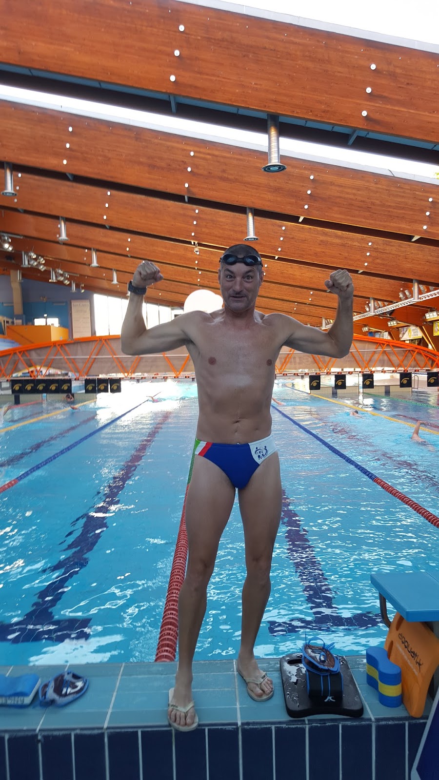 Al mattino ore 7 piscina, aria freddina ma acqua calda. Un ottimo 1800mt con ripetute sui 100 e 200 cercando di stare in scia gli squali Paolo e Roger...ma che fatica !!!